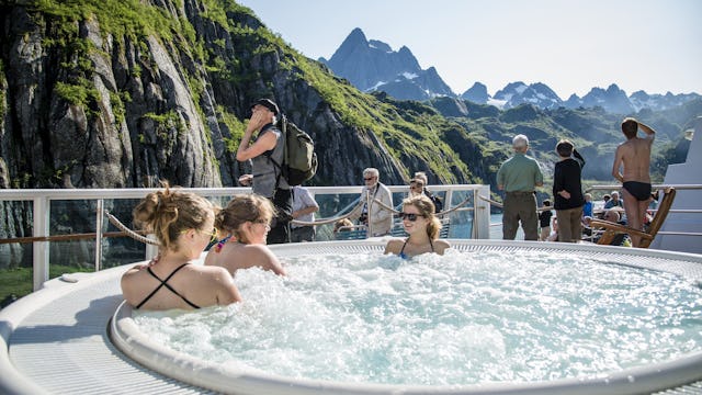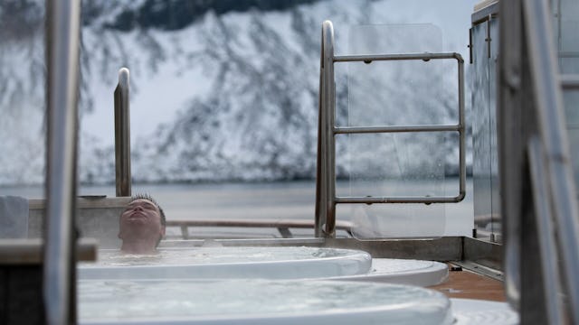 På övre däck hittar du två jacuzzis och en pool. Det är häftigt att sitta i jacuzzin när landskapet färdas förbi dig. Kommer det en snöflinga i luften så är det kronan på upplevelsen. Glöm inte att packa ner badkläder!