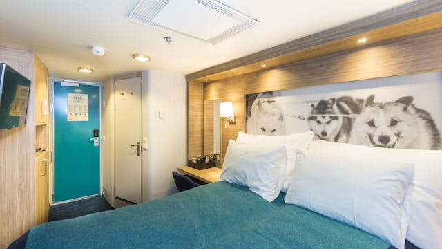 Ljusa färger och skandinavisk design präglar hytterna ombord på MS Polarlys.