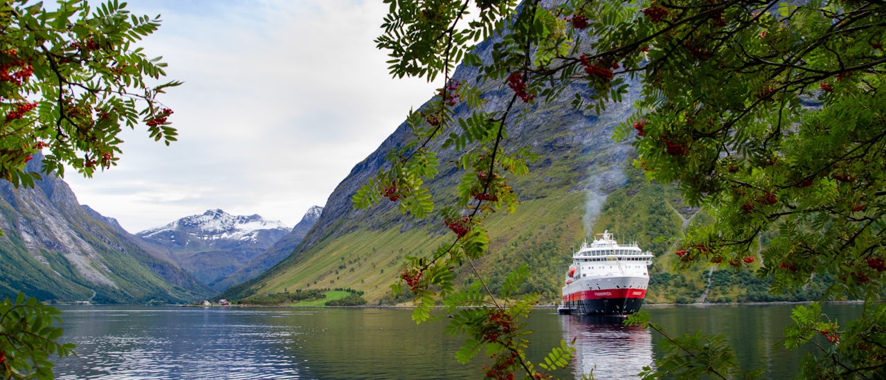 Hjørundfjorden i Sunnmøre är en unik destination i Hurtigrutens höstkoncept "Autumn Gold" och besöks endast under perioden april till maj och september till oktober.