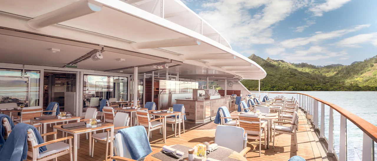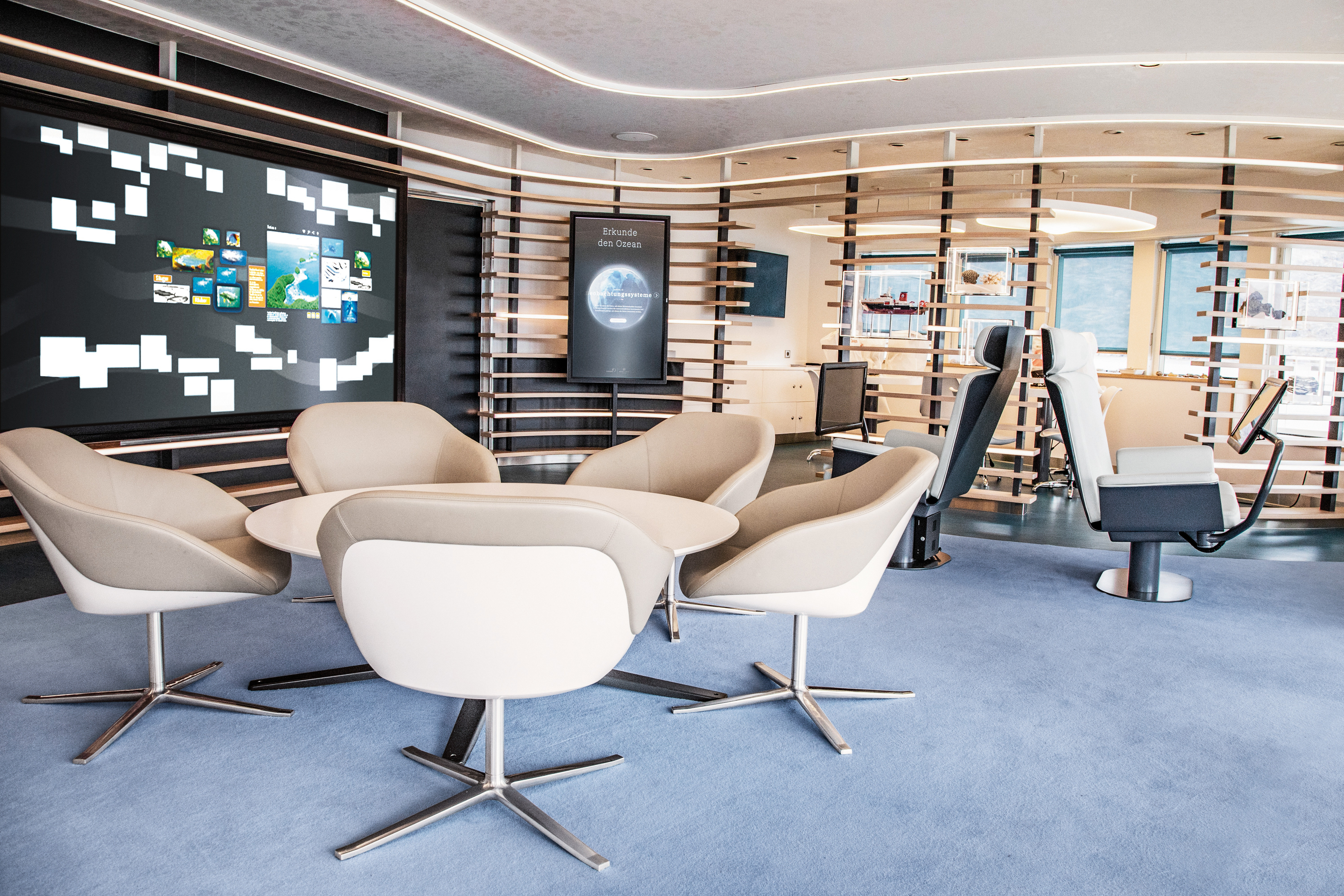 Onboard lectures, briefings and other enrichment activities are held in the HanseAtrium, the ship's social hub