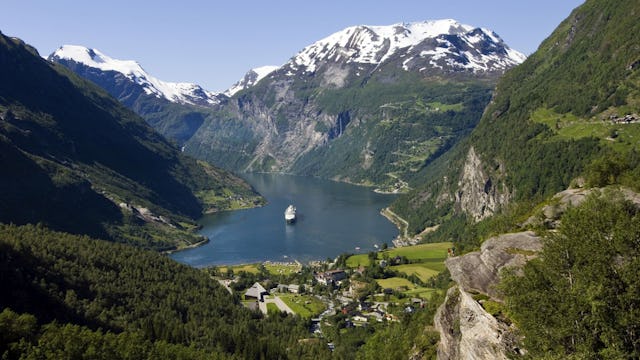 Norska fjordlandskapet är känt som ett av världens vackraste platser, och Geirangerfjorden är dess kronjuvel. Från Geiranger tar du dig upp längs Ørnesvingene till en panoramavy med utsikt över Geirangerfjorden, "De Sju Systrarna"-vattenfallen, byn och bergen.