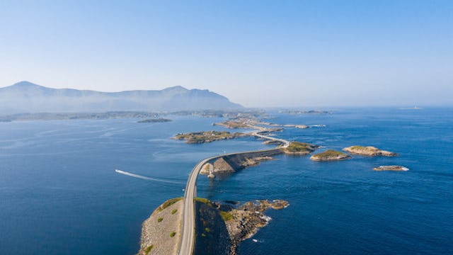 Atlantvägen är populär för bilreklam och James Bond-filminspelningar. Vi reser i lugn takt för att njuta av landskapet och ta foton. Efter att ha kört över havet genom en undervattentunnel når vi Kvernes stavkyrka, rikligt dekorerad i barockstil från 1600-talet. Vi börjar med sightseeing i Kristiansund, centrum för torkad fisk, och smakar på bacalao. Sedan gör vi en kort sightseeing i Molde innan vi går ombord på Havila Voyages-fartyget igen.