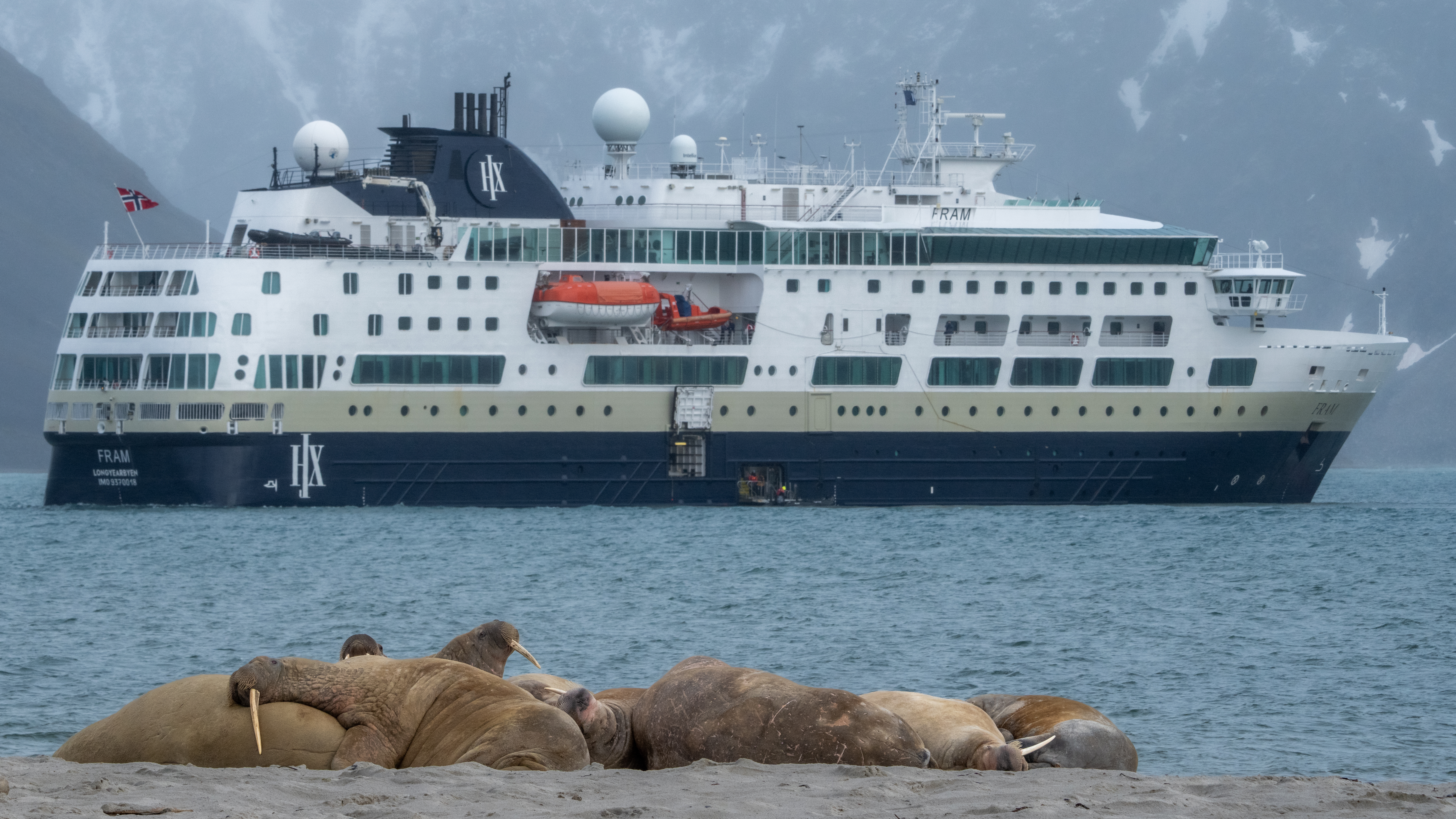MS Fram har en optimal storlek som möjliggör säker manövrering i svårtillgängliga områden och erbjuder 128 bekväma hytter, stora observationsdäck och en konstsamling skapad av lokala konstnärer från Arktis.