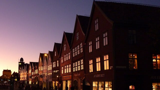 Du anländer till Bergen på eftermiddagen, checkar in på ditt hotell och kan sen upptäcka Bergen med UNESCO-listade Bryggen, utsiktspunkten Fløyen och Fisketorget.