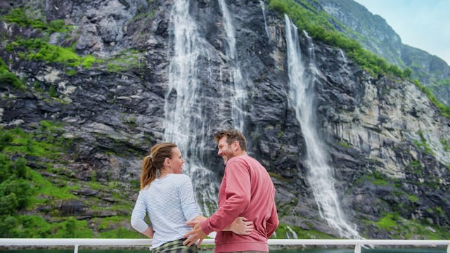 Upplev den ljusaste årstiden och midnattssolen. De arktiska sommarnätterna som inte har något slut. Tiden när dag och natt är lika långa skapar en speciell atmosfär och du kan stå ute på däck och uppleva 24 timmar om dygnet. Från juni till augusti seglar fartyget in i populära Geirangerfjorden, en av Norges vackraste fjordar med majestätiska fjälltoppar, vilda vackra vattenfall och en otrolig grönska ackompanjerat av den djupa, blå fjorden.